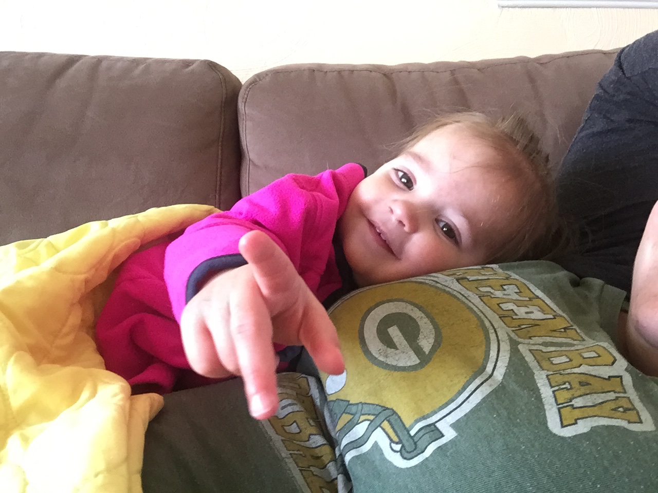 I finally found a way for Lily to paint where she doesn't get mad; using cars. She gets mad when her hands are dirty and this keeps the mess mostly on the cars. New words this week are monkey, stay, and hat. She learned stay because that is what we tell Addie. Lily is starting to drink from a big girl cup and we have fully weaned her from the pacifier. She is ready to be a toddler. She is also asserting herself more lately; she has one pair of shoes that she insists she wears everyday. This little girl is convinced she is big now.